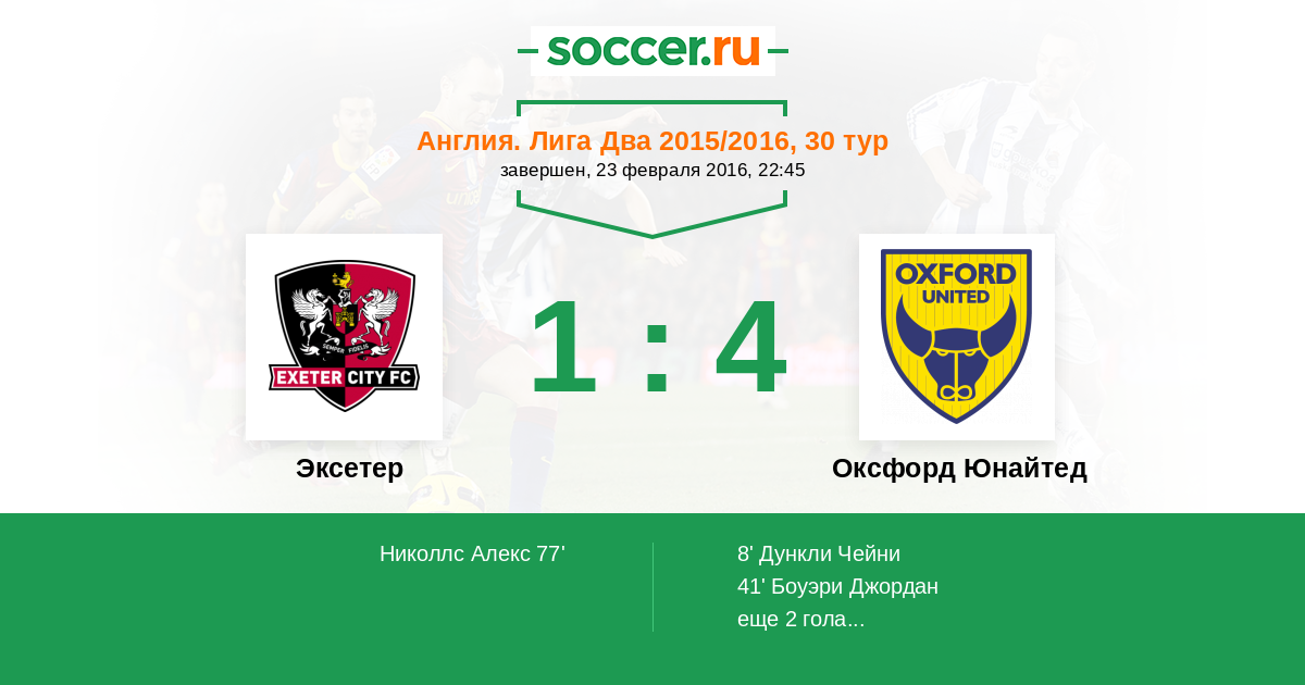 Протокол матча Эксетер против Оксфорд Юнайтед