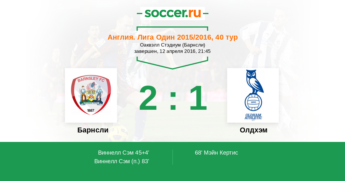 45+4' (1:0) Виннелл Сэм (9) (Хурихейн Конор (8))