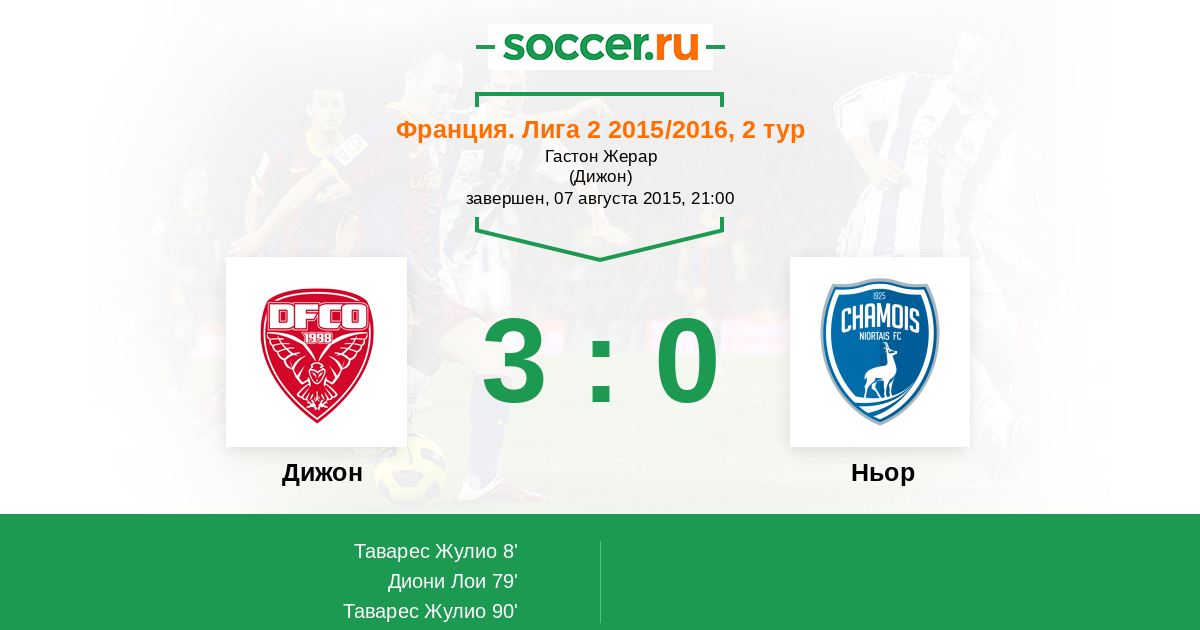 Протокол матча Дижон против Ньор