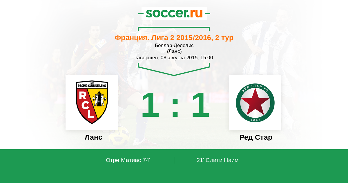 Протокол матча Ланс против Ред Стар