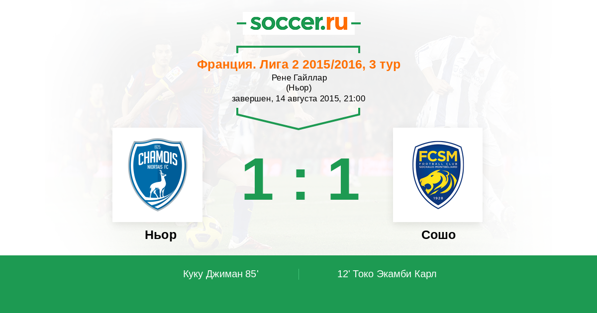 Протокол матча Ньор против Сошо