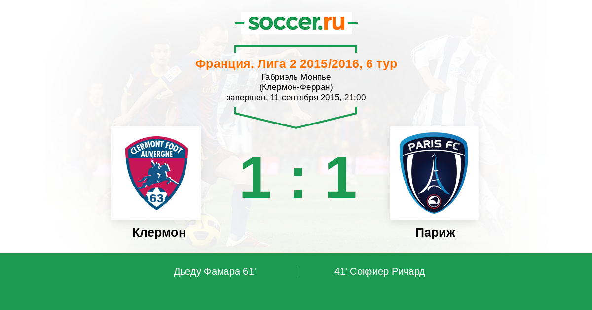 Протокол матча Клермон против Париж