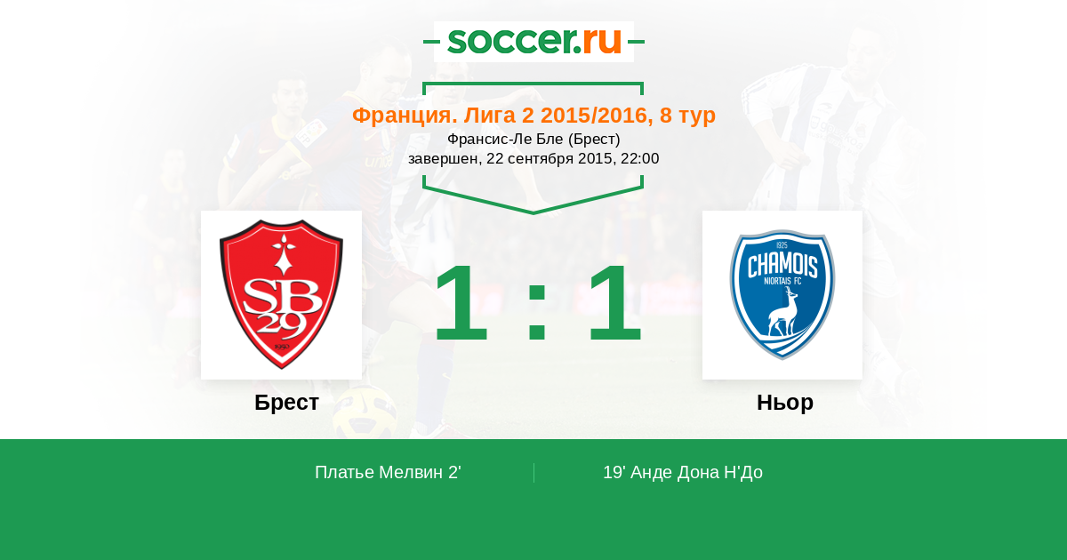 Протокол матча Брест против Ньор