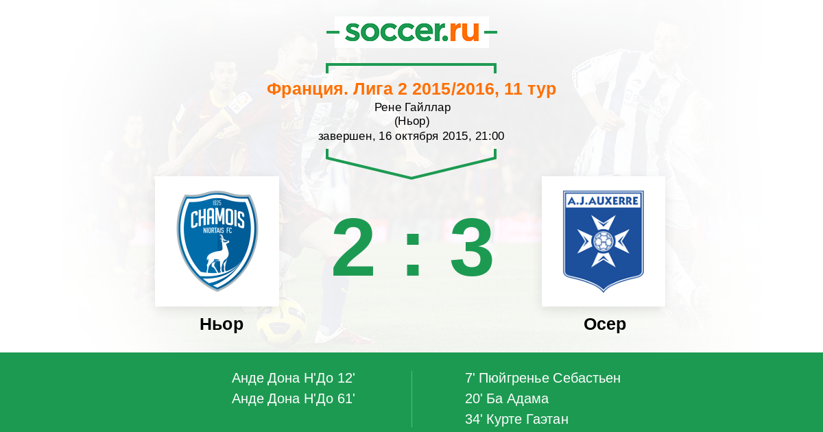 Протокол матча Ньор против Осер