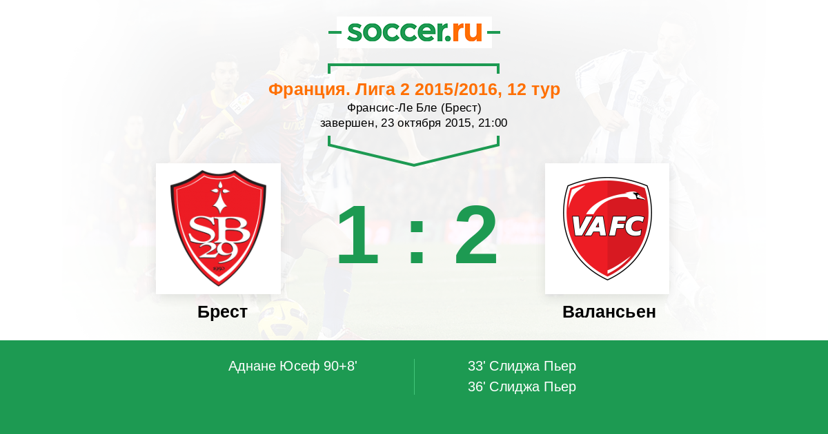 Протокол матча Брест против Валансьен