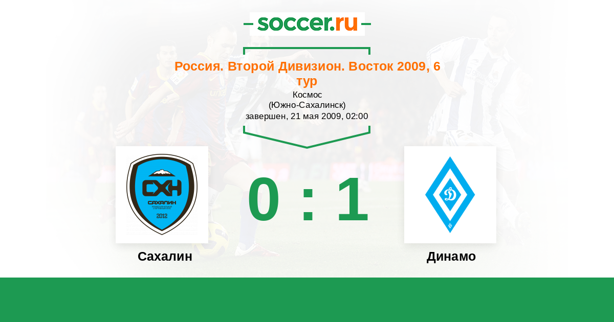 Россия. 2-й дивизион. Восток 26.09.2009 Сахалин Логотип футбольный клуб Сахалин (Южно-Сахалинск) 0:1 Логотип футбольный клуб Динамо Барнаул Динамо Барнаул