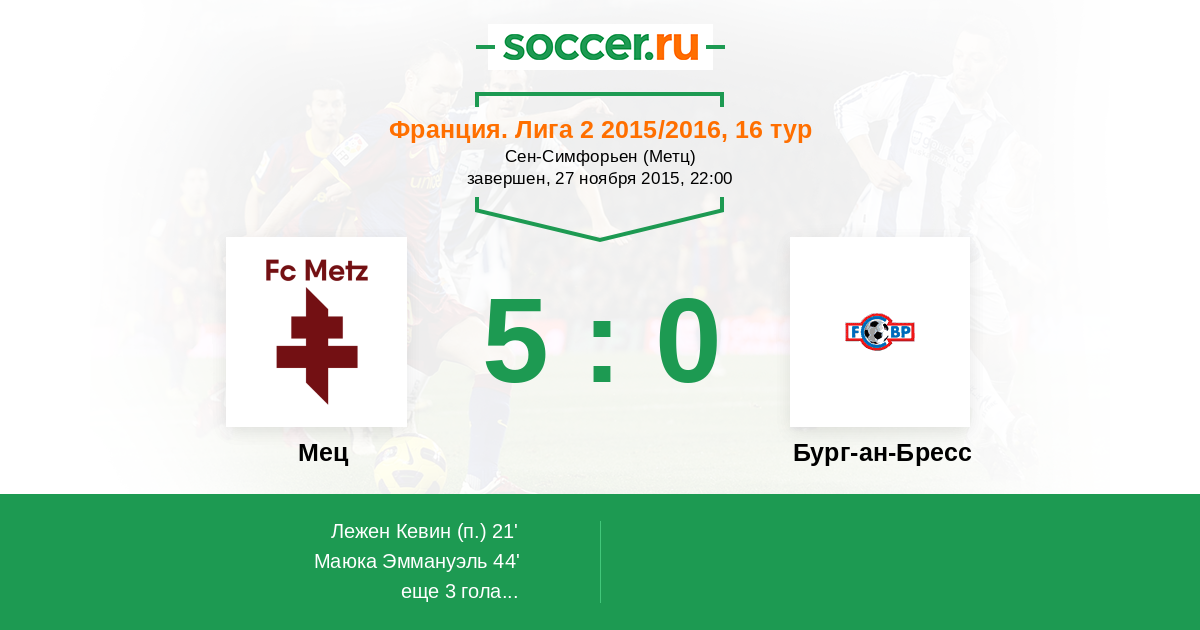 Протокол матча Мец против Бург-ан-Бресс