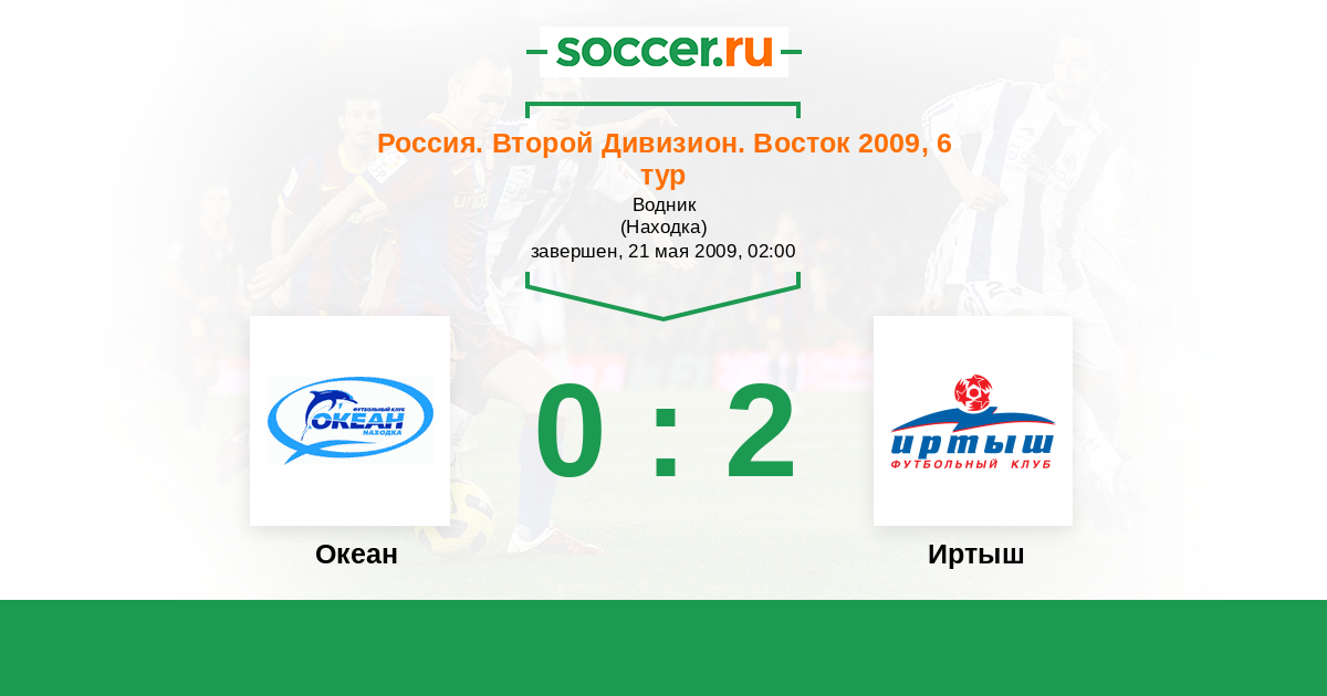 Россия. 2-й дивизион. Восток 26.09.2009 Океан Логотип футбольный клуб Океан (Находка) 0:0 Логотип футбольный клуб Иртыш (Омск) Иртыш