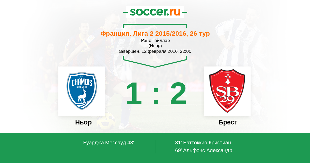 Протокол матча Ньор против Брест