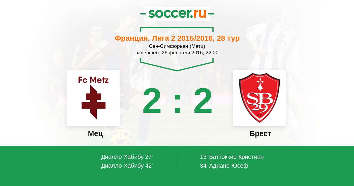 Протокол матча Мец против Брест