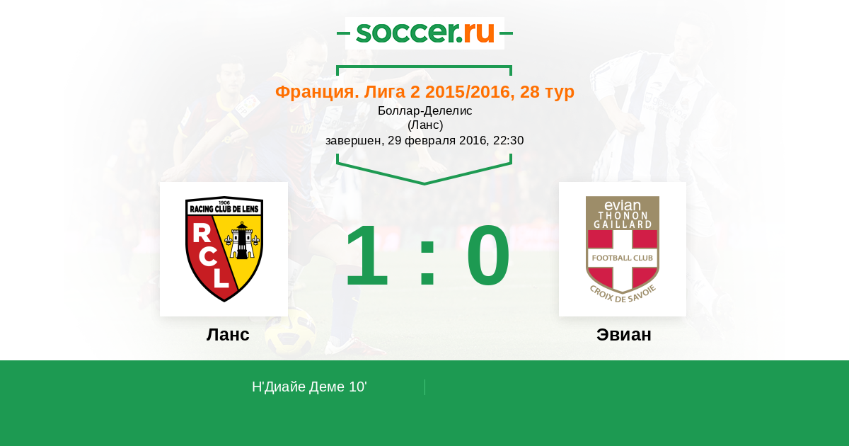 Протокол матча Ланс против Эвиан