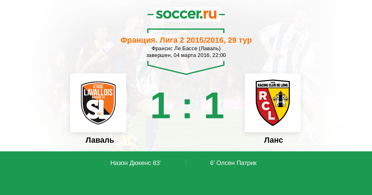 Протокол матча Лаваль против Ланс
