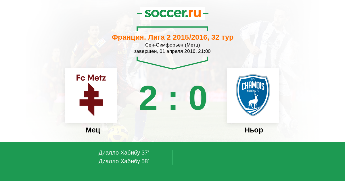 Протокол матча Мец против Ньор