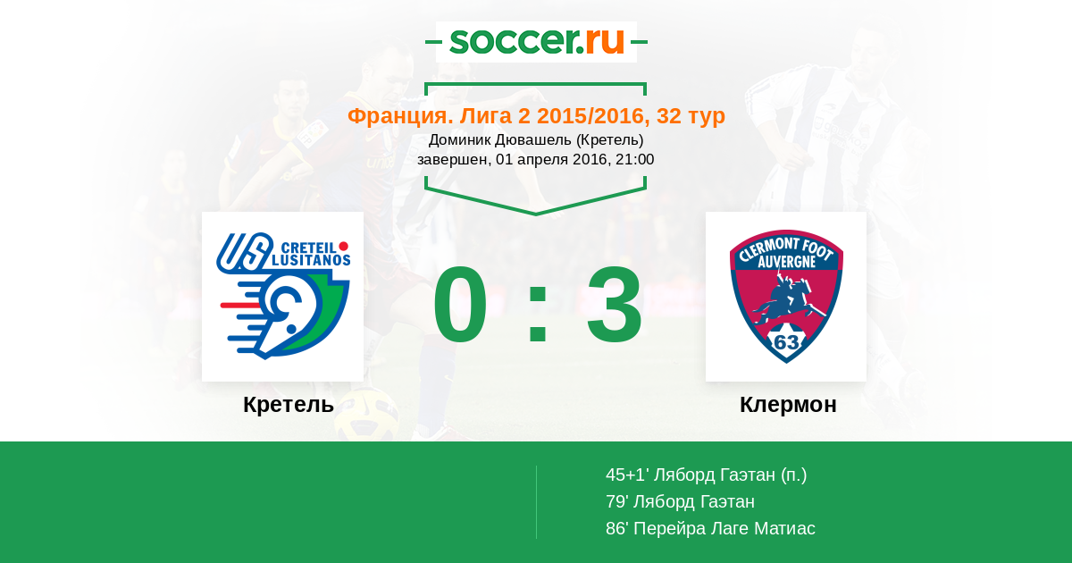 Протокол матча Кретель против Клермон