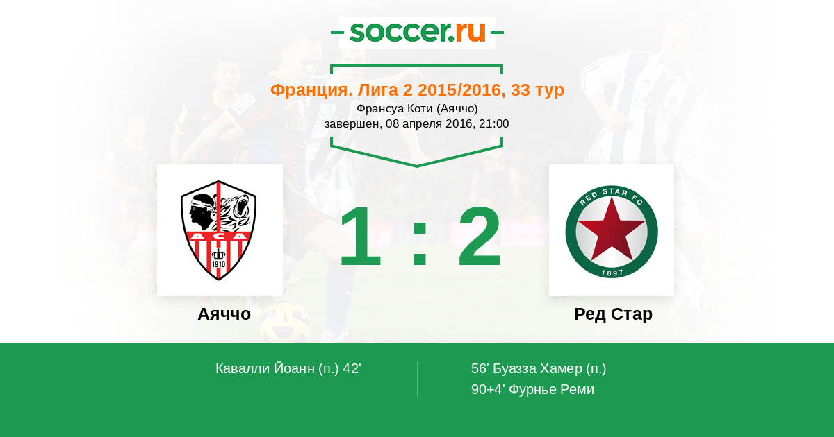 Протокол матча Аяччо против Ред Стар