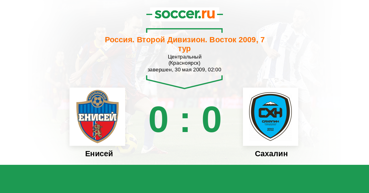 Россия. 2-й дивизион. Восток 17.07.2009 Сахалин Логотип футбольный клуб Сахалин (Южно-Сахалинск) 2:3 Логотип футбольный клуб Енисей (Красноярск) Енисей