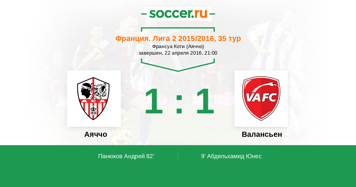 Протокол матча Аяччо против Валансьен