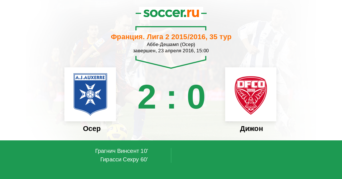 Протокол матча Осер против Дижон
