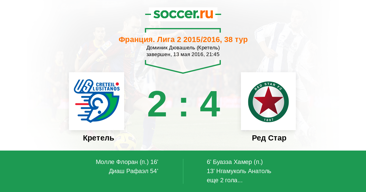 Протокол матча Кретель против Ред Стар