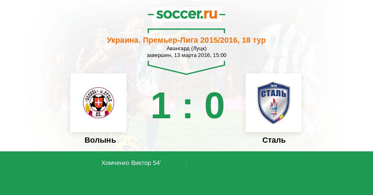 Протокол матча Волынь против Сталь