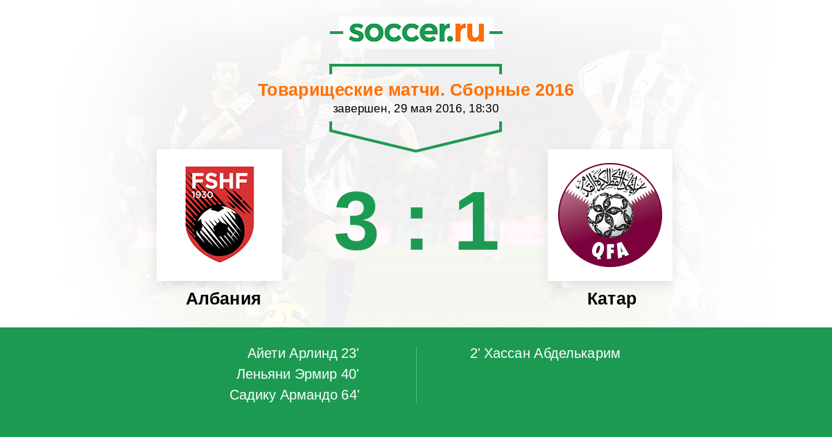 Протокол матча Албания против Катар