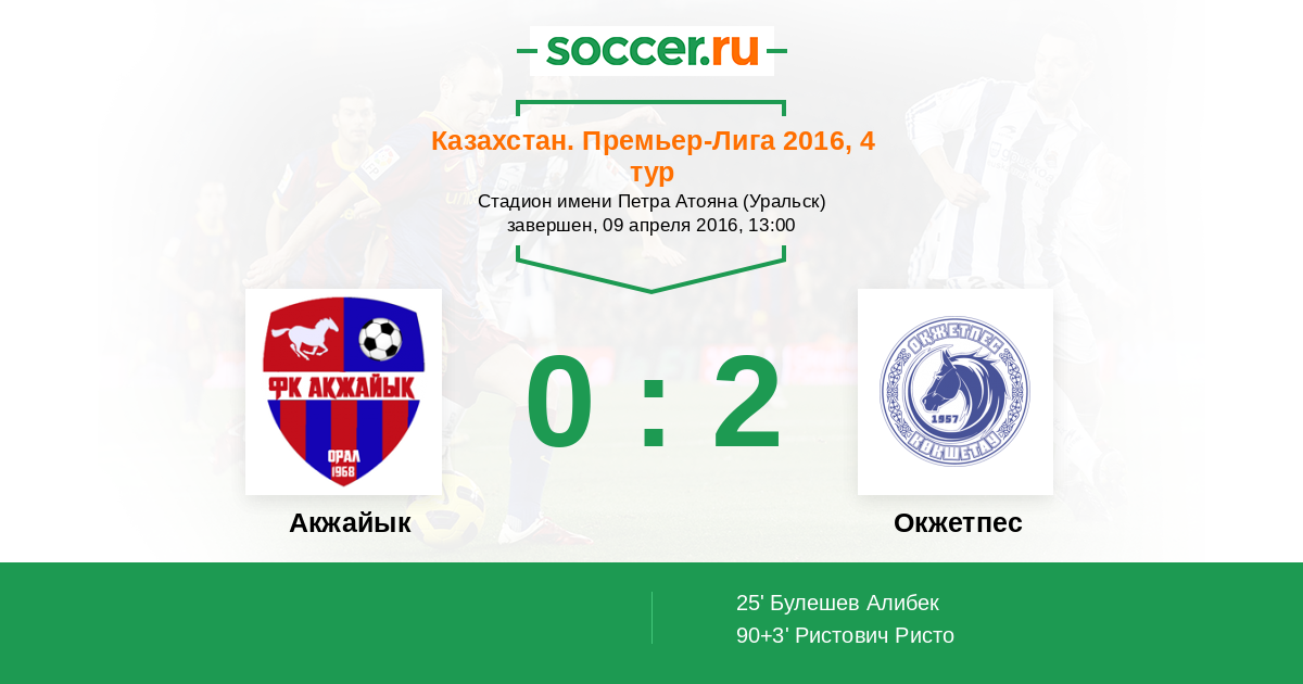 Протокол матча Акжайык против Окжетпес
