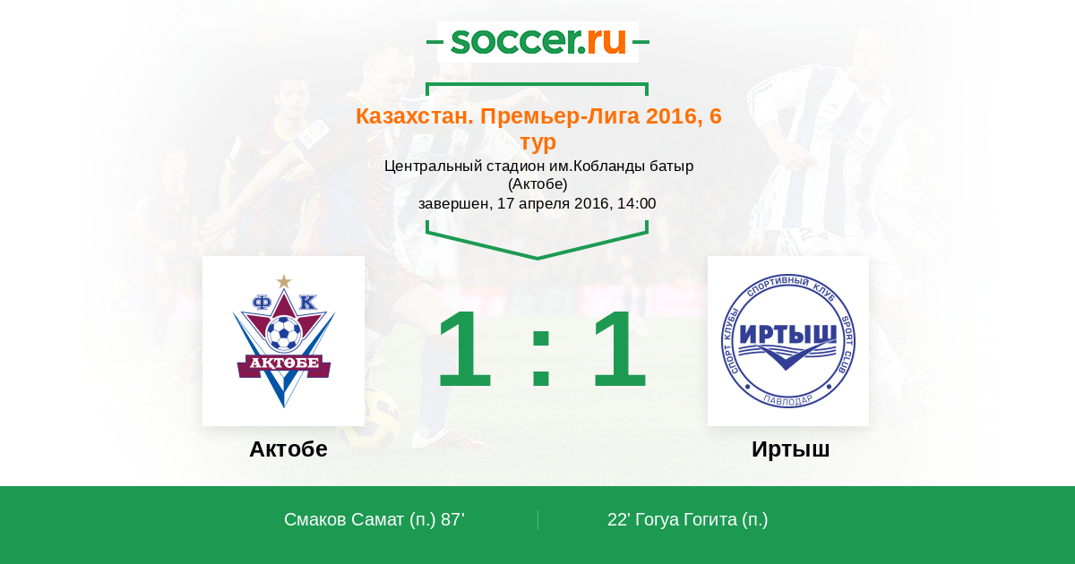 Протокол матча Актобе против Иртыш
