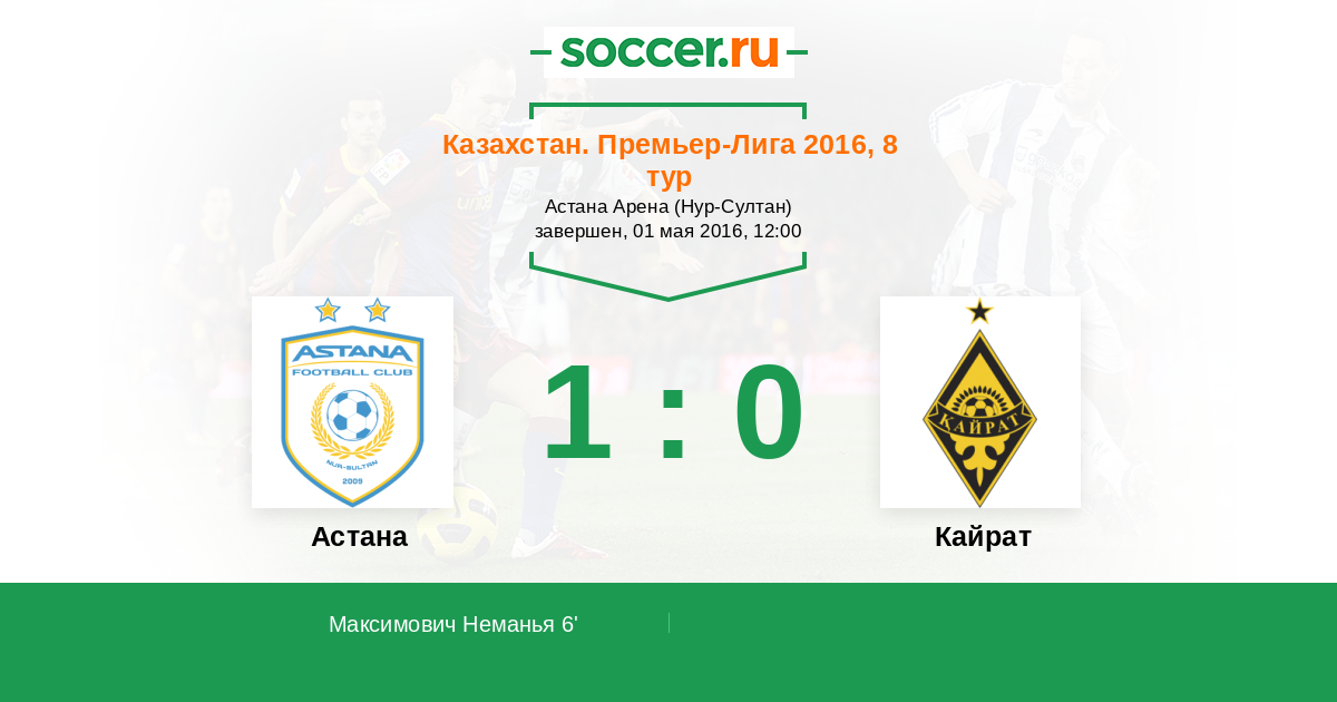 Протокол матча Астана против Кайрат