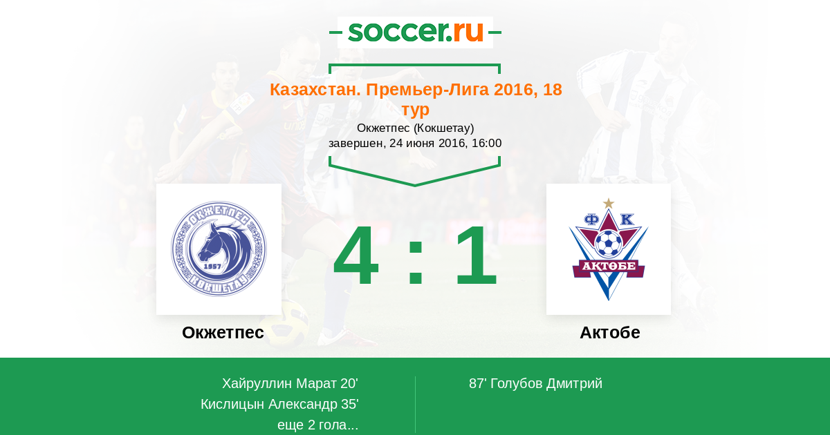 Протокол матча Окжетпес против Актобе