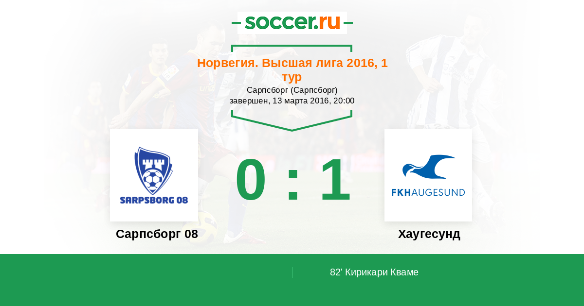 Протокол матча Сарпсборг 08 против Хаугесунд