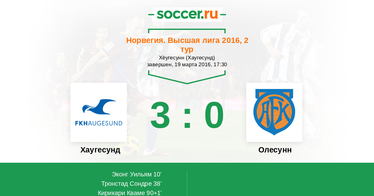 Протокол матча Хаугесунд против Олесунн