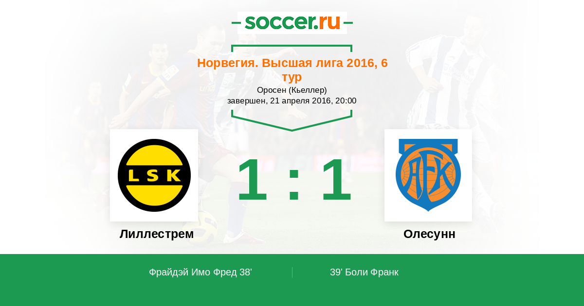 39' (1:1) Боли Франк (7) (Ларсен Питер (10))