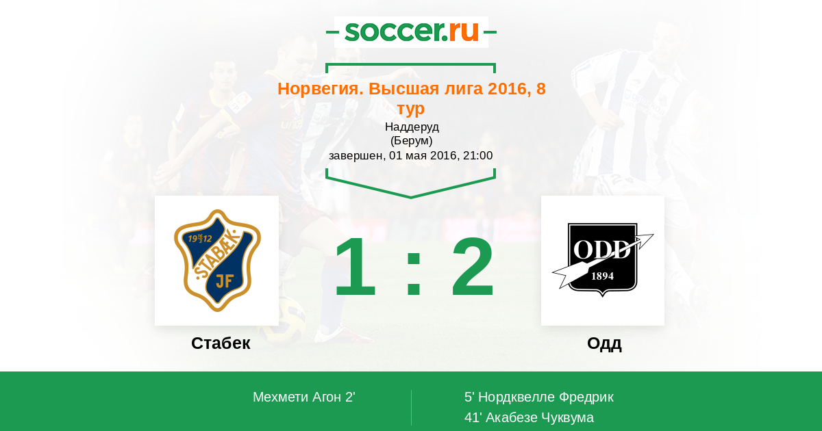 Протокол матча Стабек против Одд