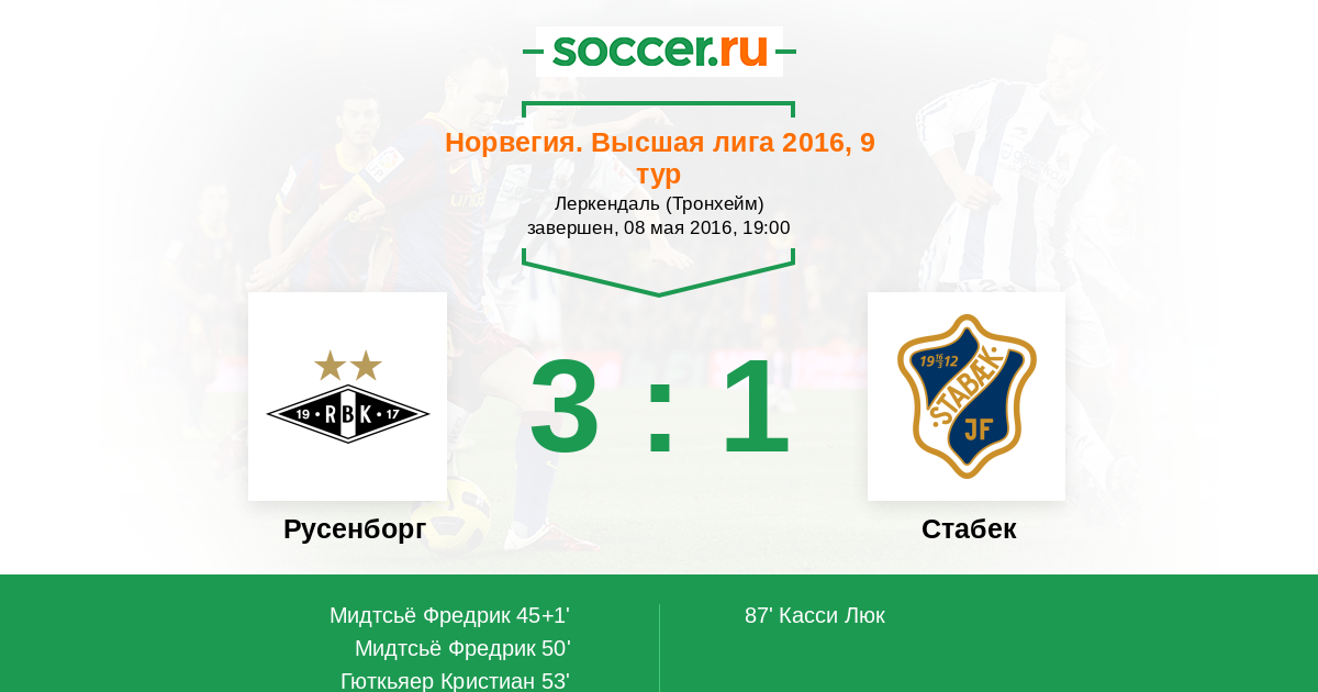 Протокол матча Русенборг против Стабек