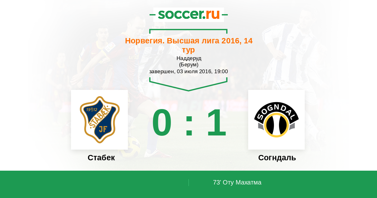 Протокол матча Стабек против Согндаль