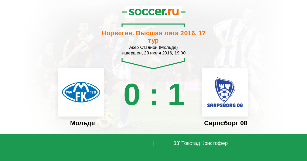 33' (0:1) Токстад Кристофер (11) (Трондсен Андерс (6))