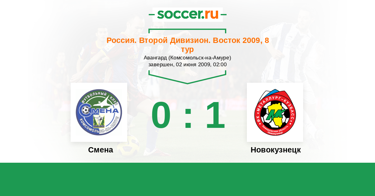 Россия. 2-й дивизион. Восток 08.10.2009 Смена Логотип футбольный клуб Смена (Комсомольск-на-Амуре) 0:1 Логотип футбольный клуб Металлург-Кузбасс (Новокузнецк) Металлург-Кузбасс