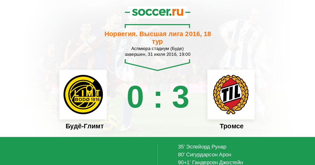 35' (0:1) Эспейорд Рунар (30) (Антонсен Кент-Аре (3))
