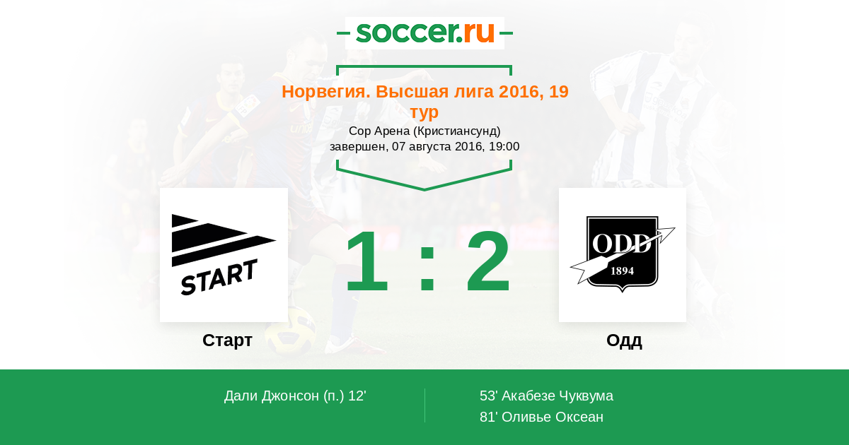 Протокол матча Старт против Одд