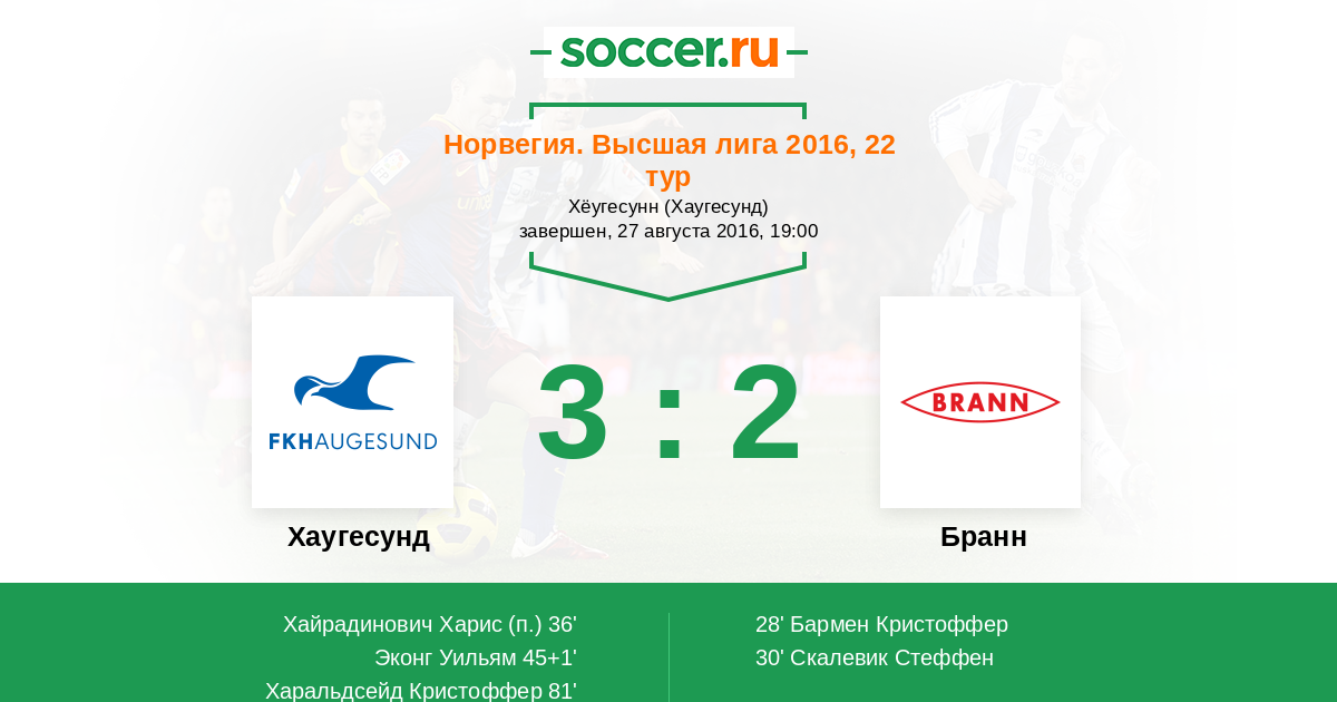 Протокол матча Хаугесунд против Бранн