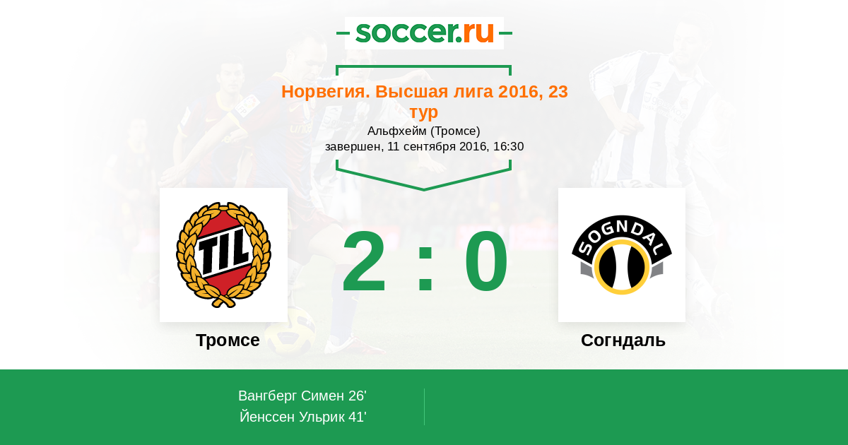 26' (1:0) Вангберг Симен (22) (Ингебригтсен Микаэль (24))