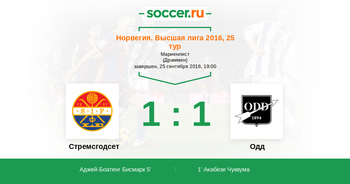 Протокол матча Стремсгодсет против Одд