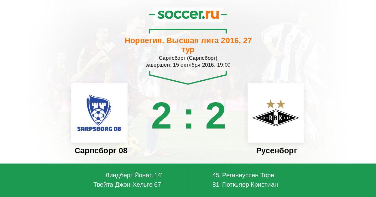 Протокол матча Сарпсборг 08 против Русенборг