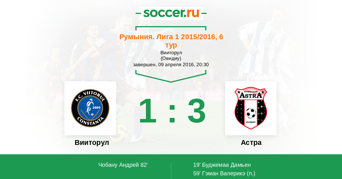 Протокол матча Вииторул против Астра