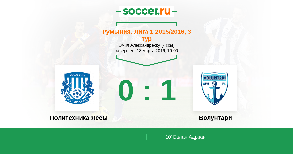 10' (0:1) Балан Адриан (90)