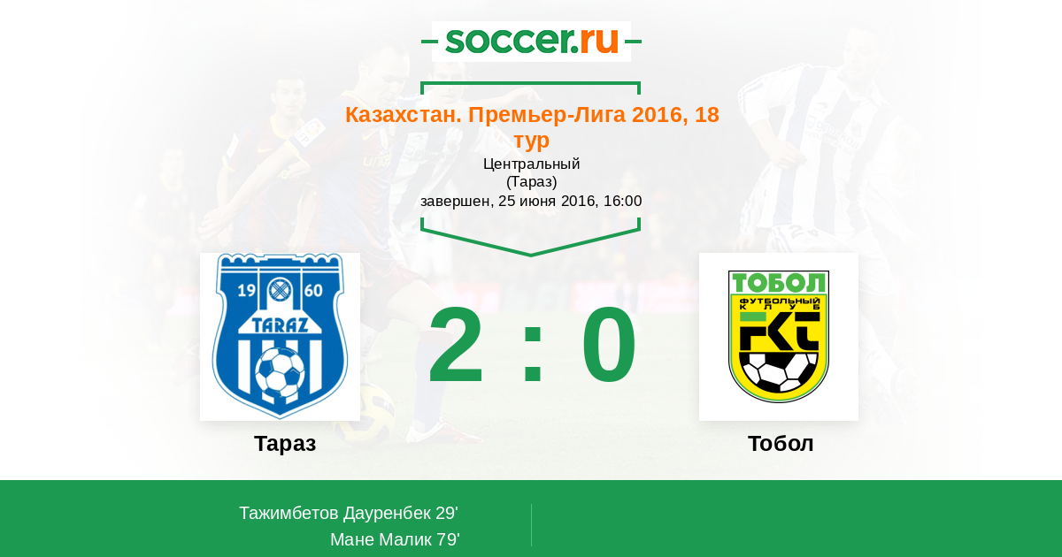 Протокол матча Тараз против Тобол