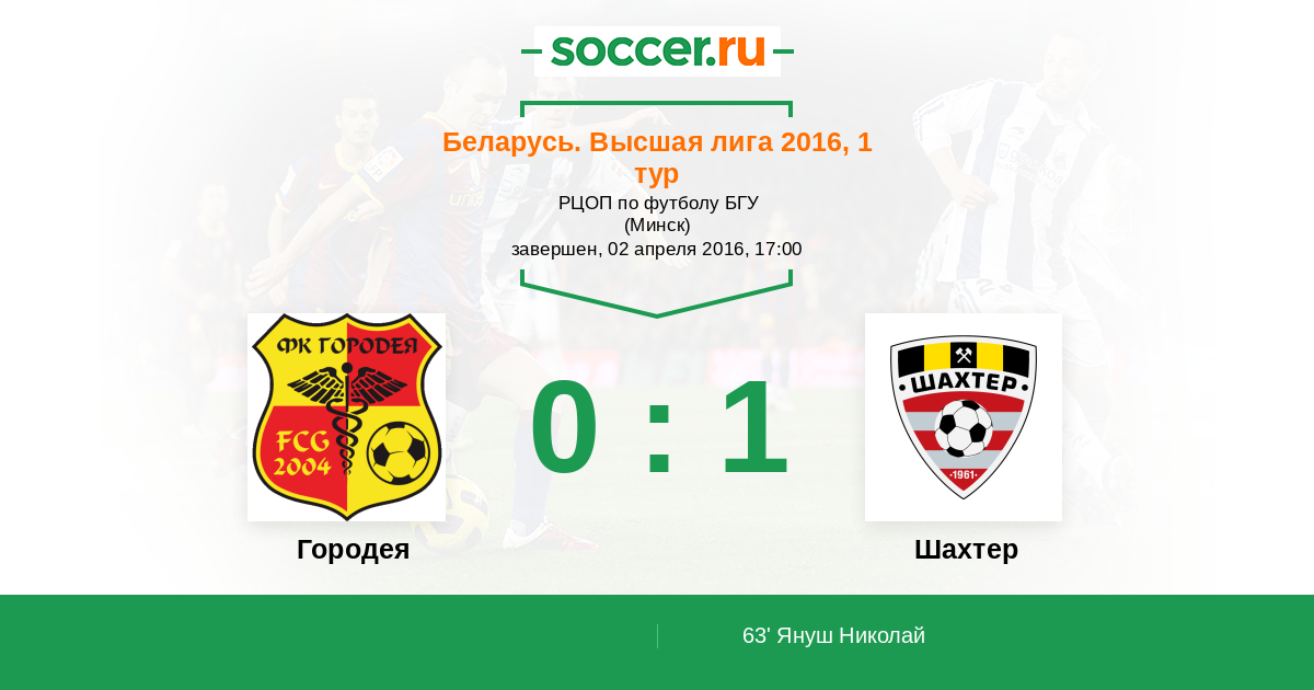 Протокол матча Городея против Шахтер