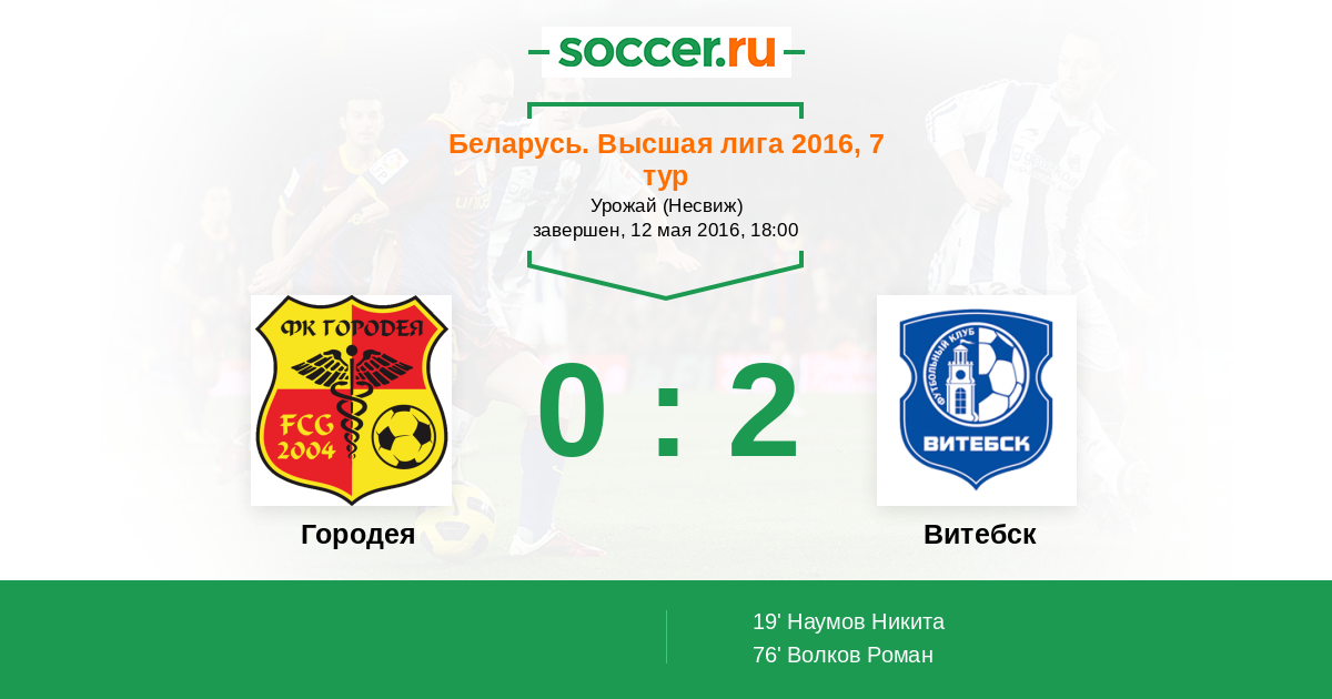 Протокол матча Городея против Витебск