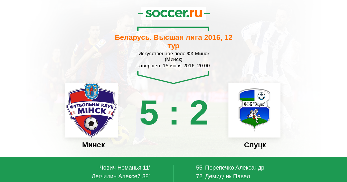 Протокол матча Минск против Слуцк
