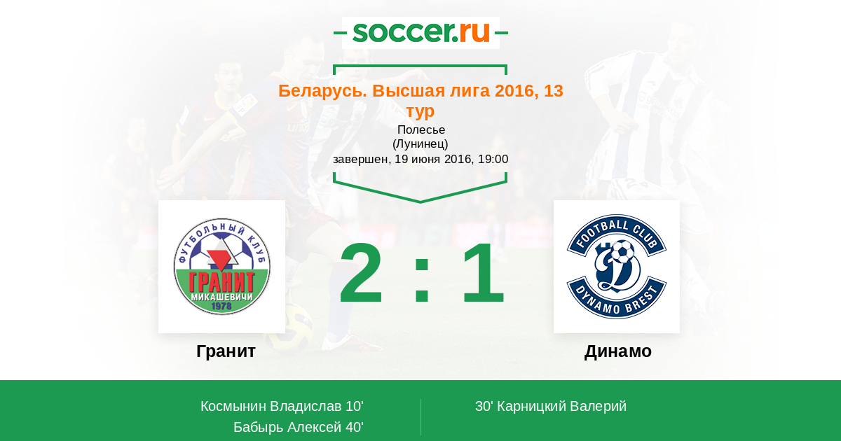 Протокол матча Гранит против Динамо